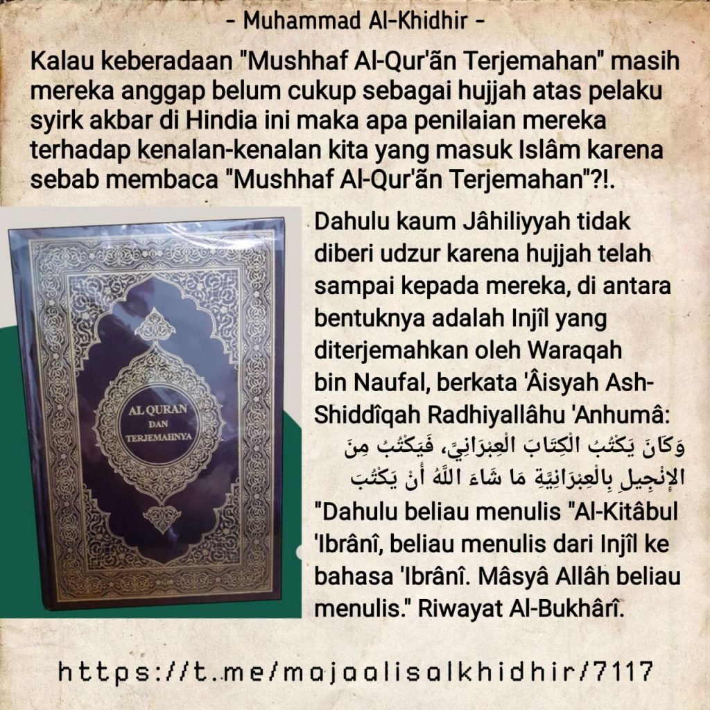 Kalau keberadaan “Mushhaf Al-Qur’ãn Terjemahan” masih mereka anggap belum cukup sebagai hujjah atas pelaku syirk akbar di Hindia ini maka apa penilaian mereka terhadap kenalan-kenalan kita yang masuk Islâm karena sebab membaca “Mushhaf Al-Qur’ãn Terjemahan”?!.