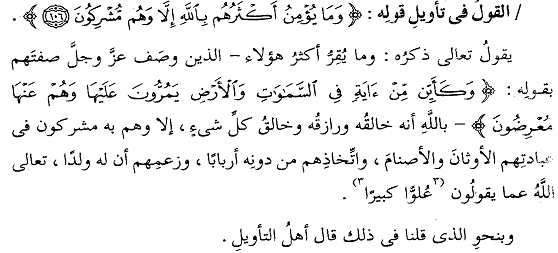 وَمَا يُؤْمِنُ أَكْثَرُهُمْ بِاللَّهِ إِلا وَهُمْ مُشْرِكُونَ