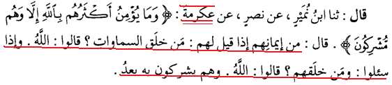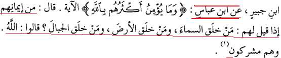 Ayat ini menunjukkan bahwa kaum musyrikin Arablah yang membagi tauhid kepada Allah, sehingga hanya mengimani sebagian tauhid (yaitu tauhid rububiyah) dan berbuat syirik dalam tauhid al-uluhiyah.