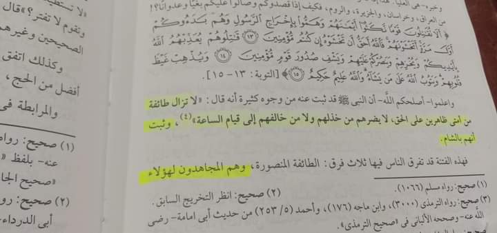 Syaikhul Islam Ibnu Taimiyah -rahimahullah-berkata: “Ketahuilah -semoga Allah memperbaiki kalian- bahwa telah terbukti dari jalur yang sangat banyak, sesungguhnya Nabi -Shallallahu ‘Alahi Wasallam- telah bersabda “Akan senantiasa ada dari umatku yang berada diatas kebenaran, orang-orang yang menghinakan dan menyelisihi mereka tidak akan memberikan mudharat pada mereka hingga datangnya hari kiamat.”
