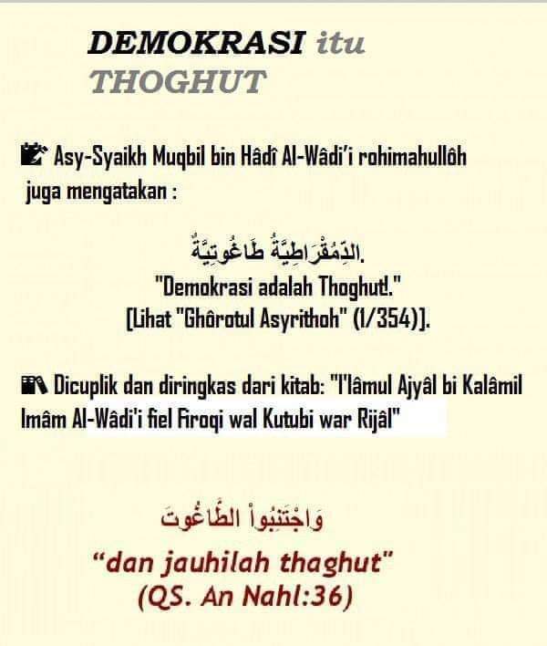 “Demokrasi terdapat padanya penelantaran terhadap Kitabullôh dan Sunnah Rosulillâh shollallôhu alaihi wa sallam.”