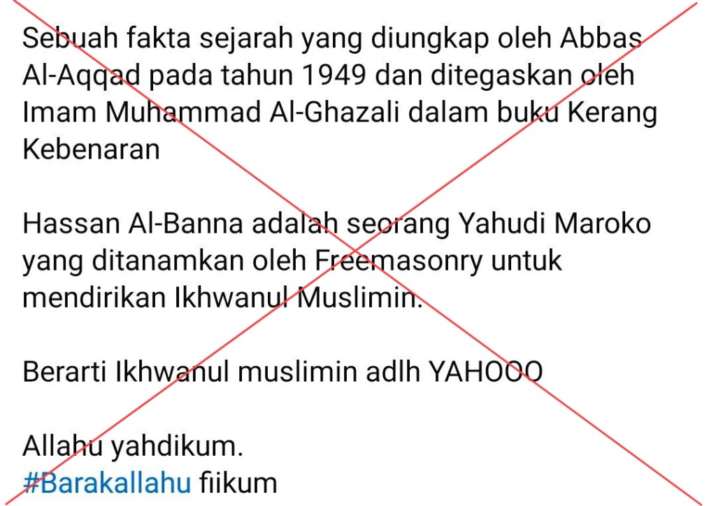 Banyak teori konspirasi yang disebarkan akun-akun yang berintisab kepada Salafiyyah bahwasanya Hasan al-Banna adalah seorang agen Yahudi…